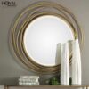 Crownleaf Mirror is where nature meets nobility. Designed by Royal Home Decor, this 29×20 inch wall mirror features a sculptural iron frame adorned with golden leaf motifs—each one a delicate nod to organic beauty and regal charm. The mirror’s elongated oval shape adds vertical grace, while its reflective surface opens up your space with warmth and light.