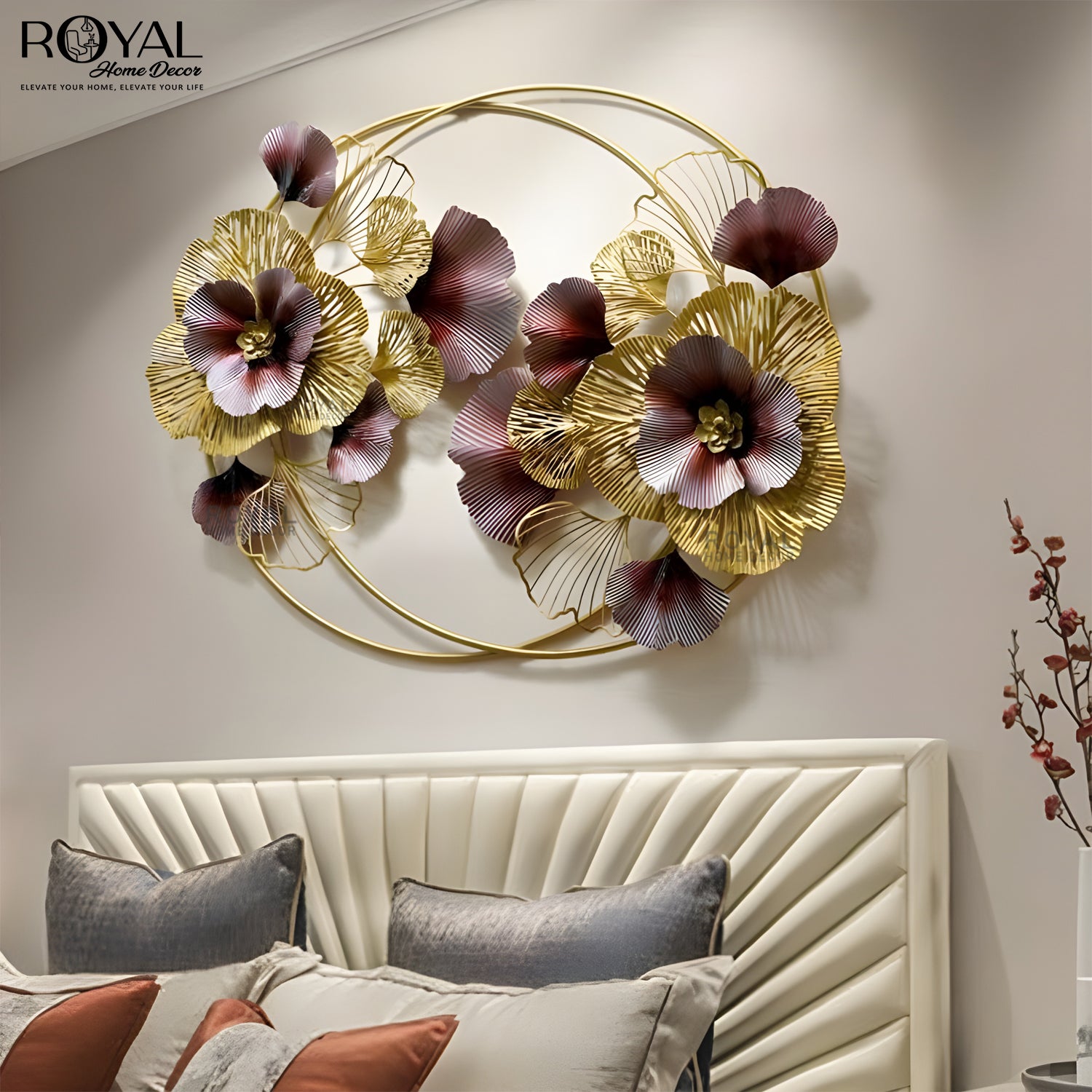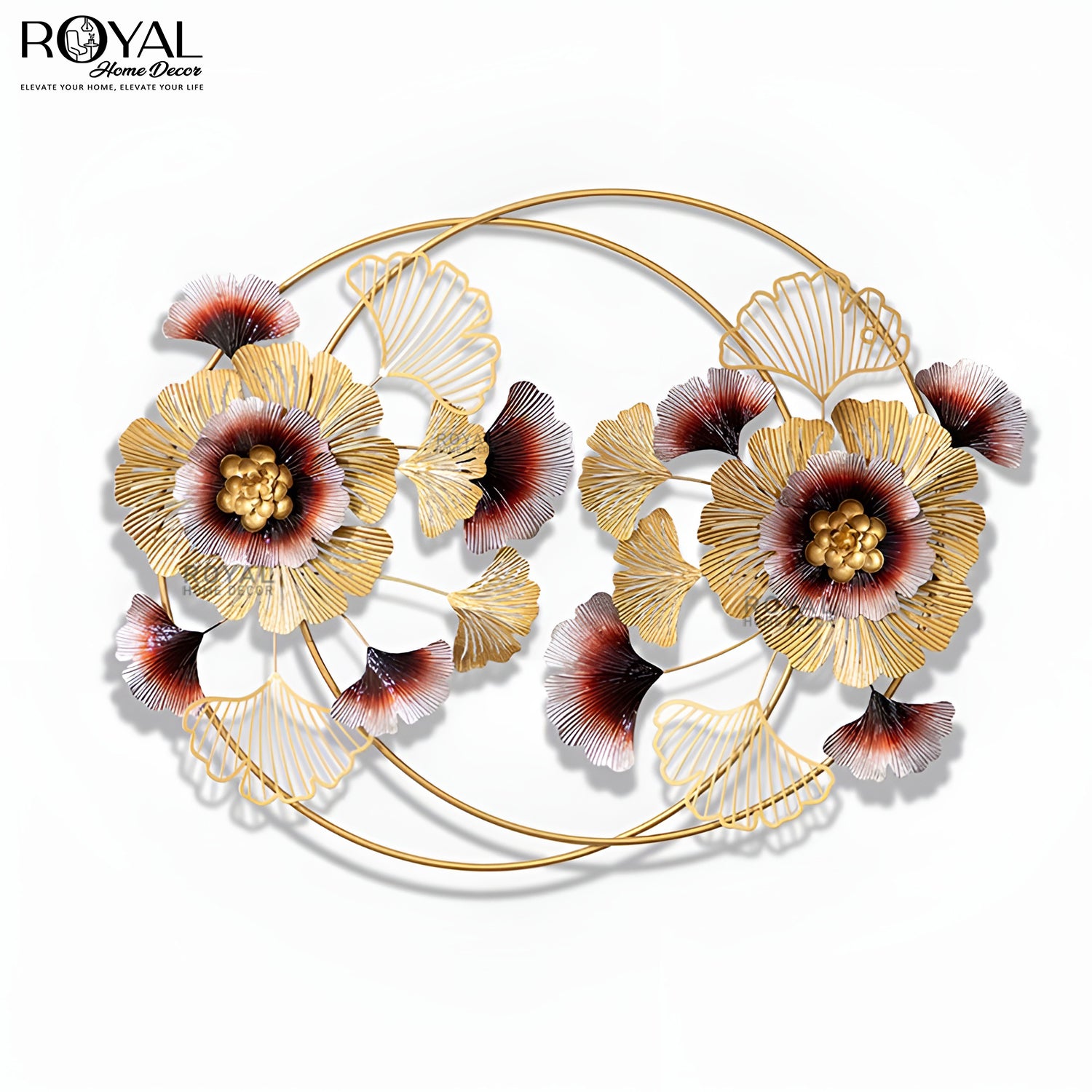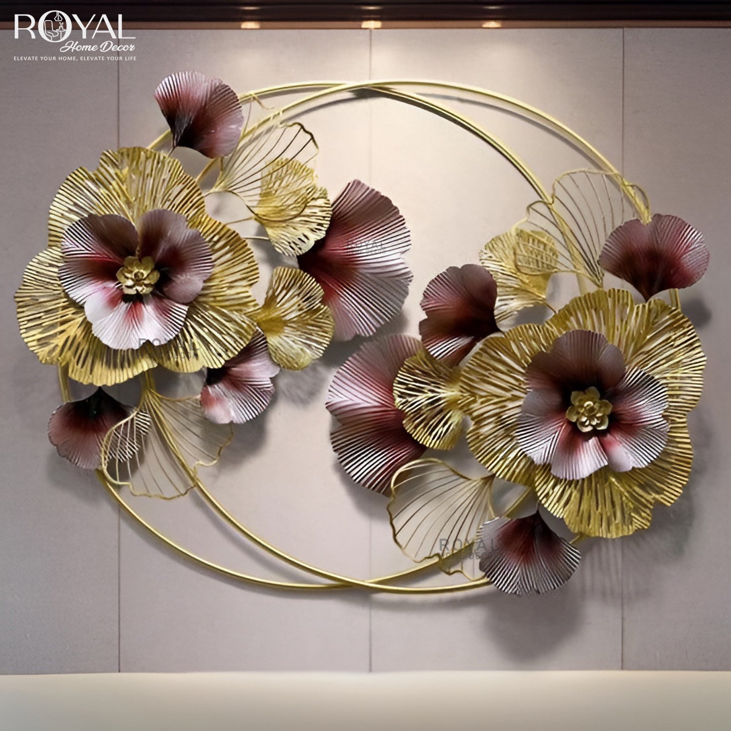 Crafted from premium-quality metal with a radiant gold finish, this decorative wall piece effortlessly blends elegance and style, making it a perfect centerpiece for your living room, dining area, bedroom, or hallway. The captivating floral design and shimmering metallic accents add a touch of luxury to any space, making it an ideal choice for modern and classic interiors alike.
